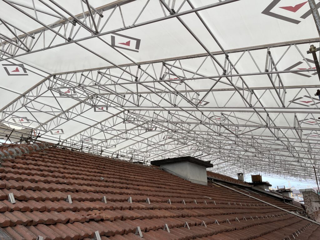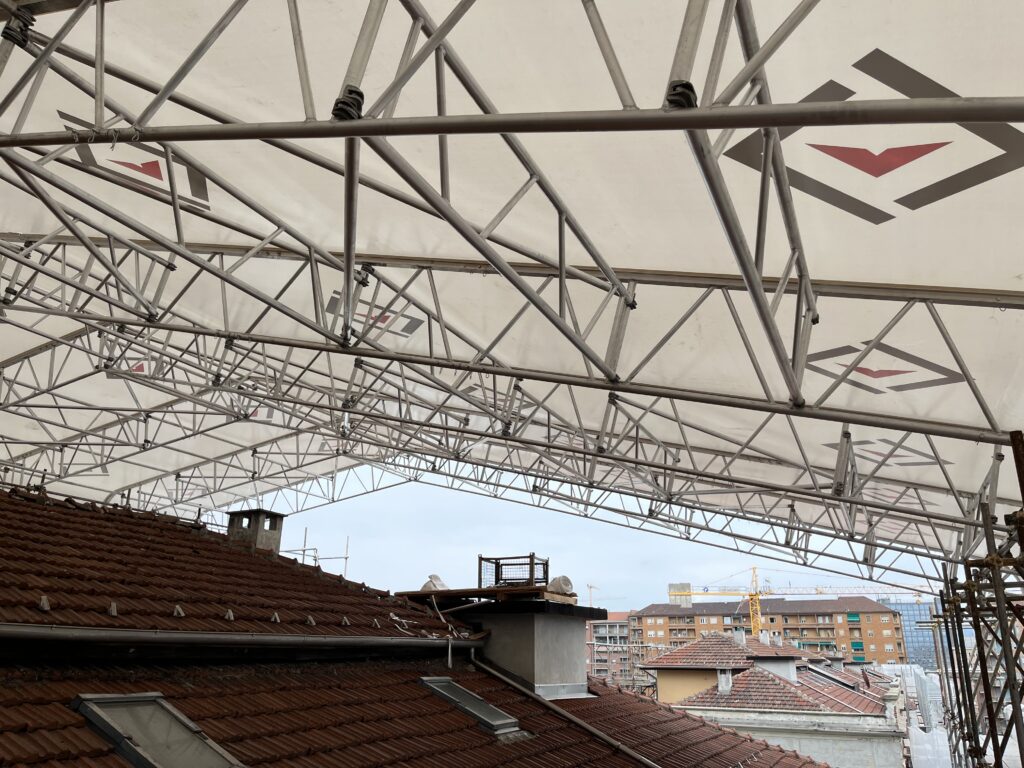 ROOFTOP is a roof modular system designed for wide spans ideal for events or protection of a building site.