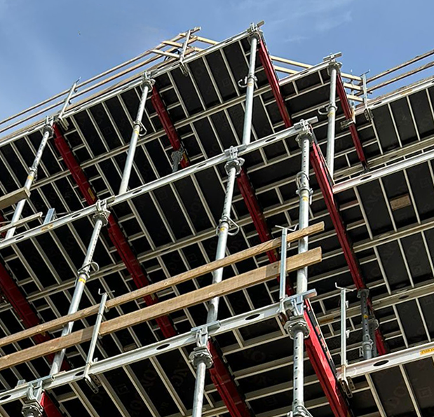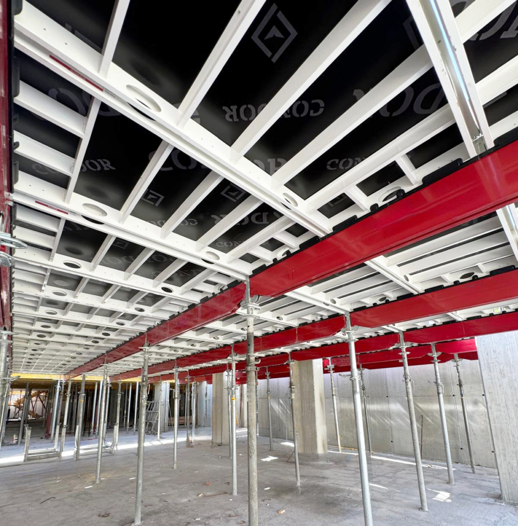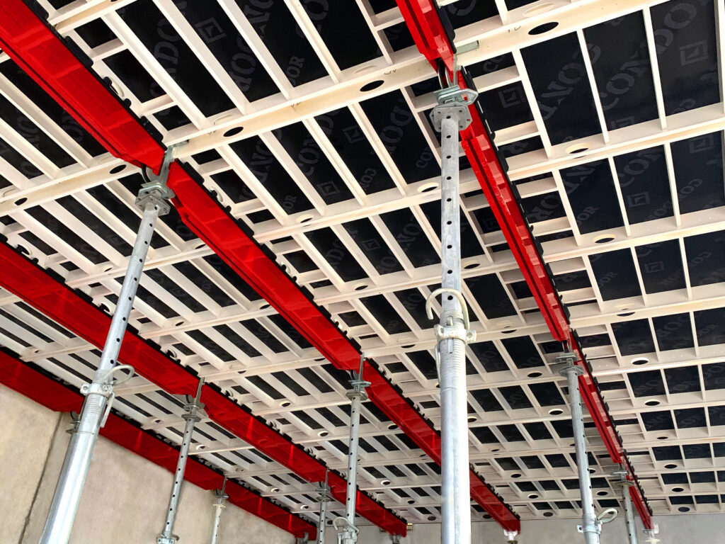 Aludeck formwork. Aluminium frame formwork which’s modular and flexible, thus saving time in slab castings.