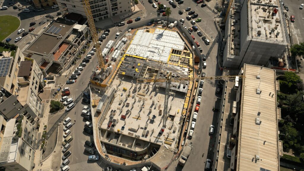 Thanks to the drop heads, it is possible to perform early striking and recover panels and beams from the casted floor, leaving only intermediate props. Primary and secondary beams and panels can be immediately used again (for example on the upper floor) with a new set of props, in order to reduce the amount of provided components and significantly drop down performing time.