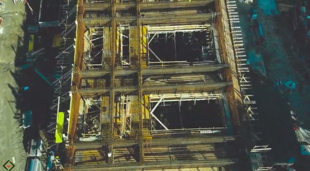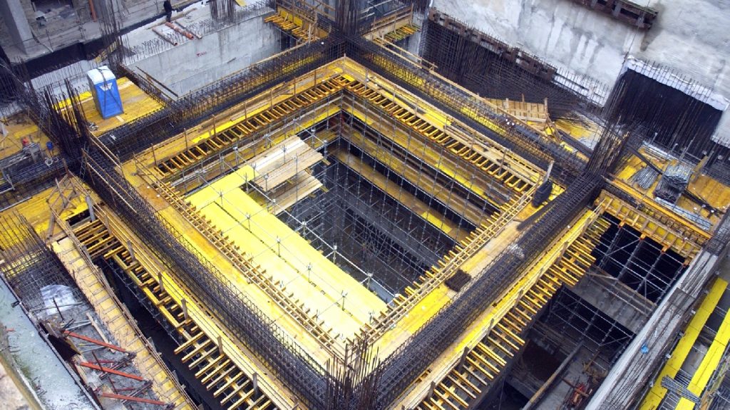 CONDOR supplied adatto formwork system for wall casting, SRC240 climbing system and MC shoring towers for slabs with height up to 12 m with floor slab of about 1 m.
